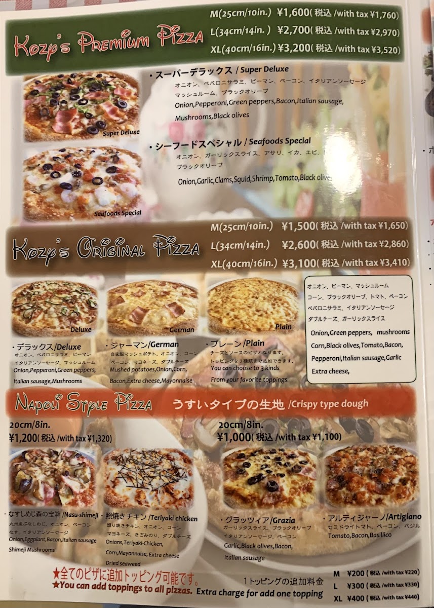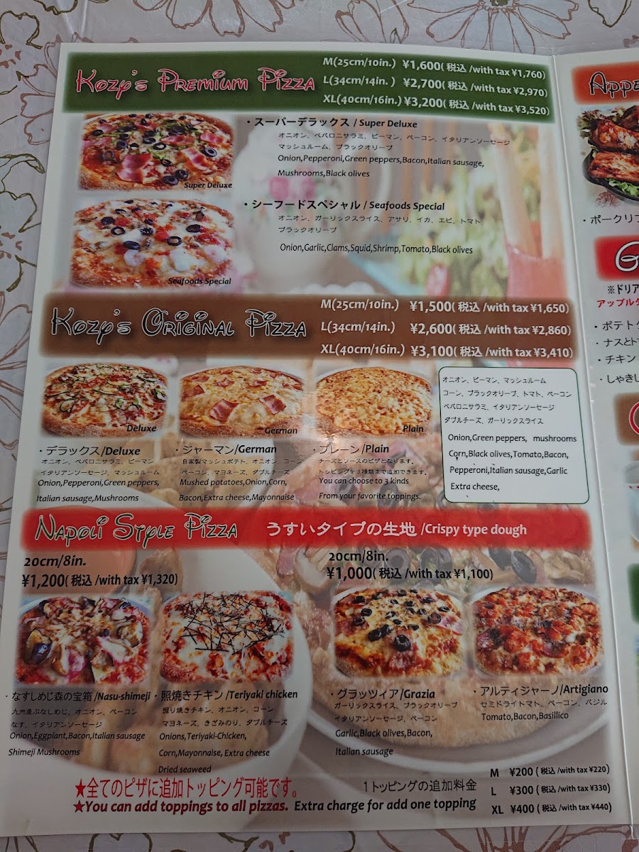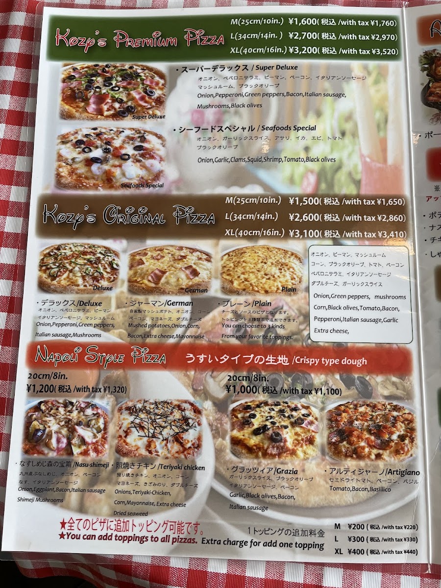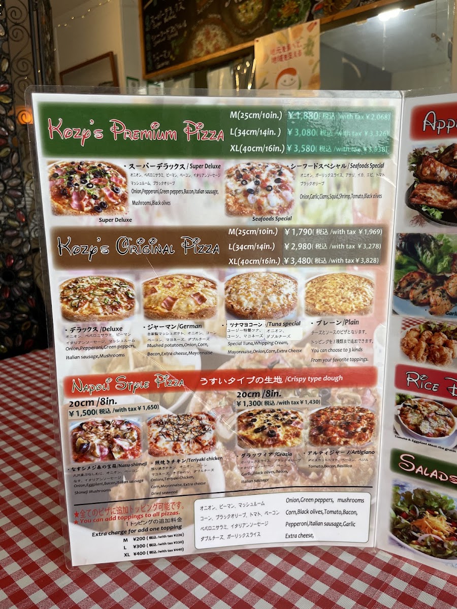 Welcome to Kozy's Pizza, a delightful café located in the heart of Okinawa, Japan. Famous for its amazing pizza, Kozy's offers a rich menu that features a standout dish: the スーパー・デラックス pizza. This culinary masterpiece boasts eight expertly combined toppings, including pepperoni, mushrooms, and organic veggies, ensuring every bite is a flavor explosion.
